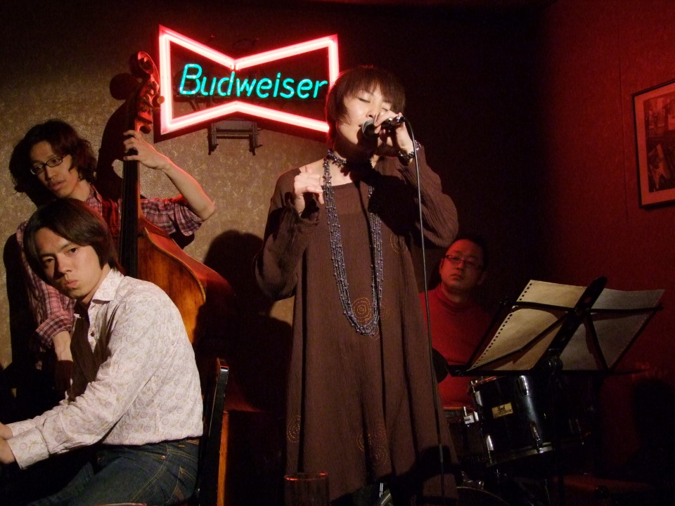 昨日は、経堂の Crazy Love にて、ボーカルの平尾由美さんとライブをやってきました。演奏メンバーは自分と、由美さんと、ベースの池田暢夫君と、ドラムの倉橋利幸の4人編成で、今年の2月に初顔合わせ〔どうやら5年越しだそうで…参照〕以来、今回が2回目のライブとなったものです。