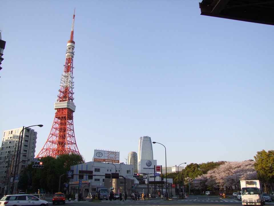 さて、もう先月の初旬くらいの写真になってしまいますが、噂の東京タワーの外観を見る機会があったので、ここに掲載したいと思います。確かに…先端…、曲がってますね。