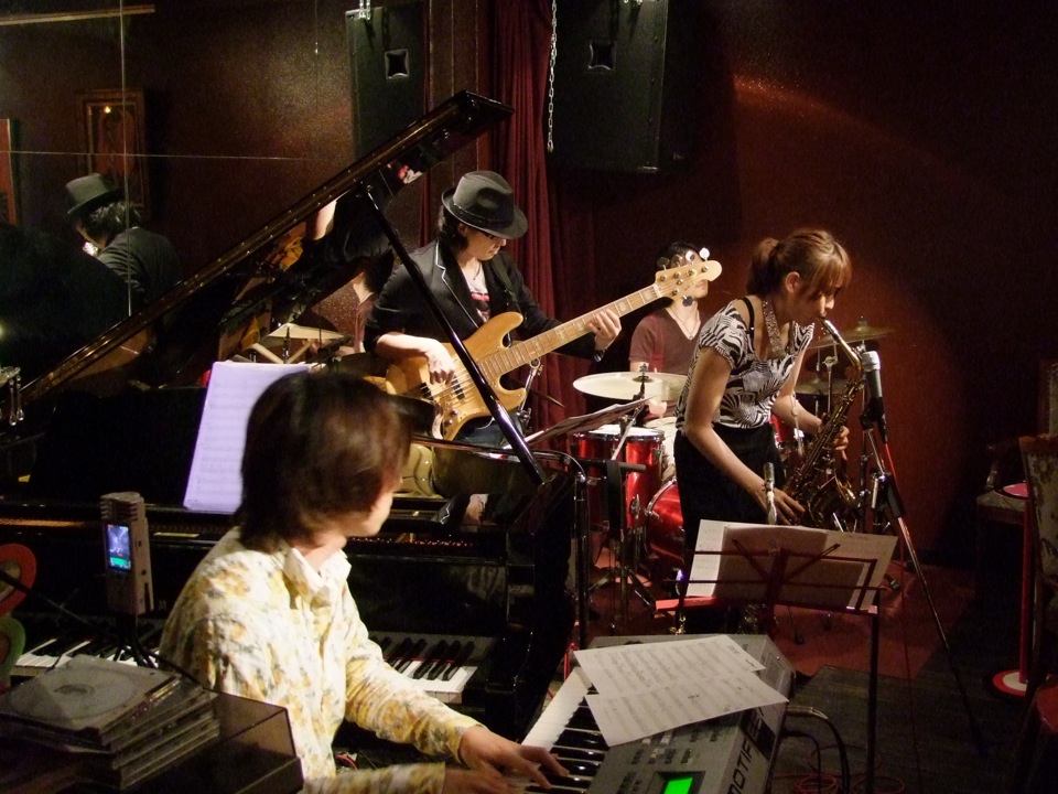前回のお店の時は、ピアノはアップライトでしたが、新しくグランドピアノが入ったようで、それと自分の持っていったキーボードと組み合わせて、海野さんのサウンドを作っていきます。いつものように、この日も殆どが海野さん自身のオリジナル曲ですので、セッション的な部分も含めつつ、攻めの姿勢で演奏していきました。