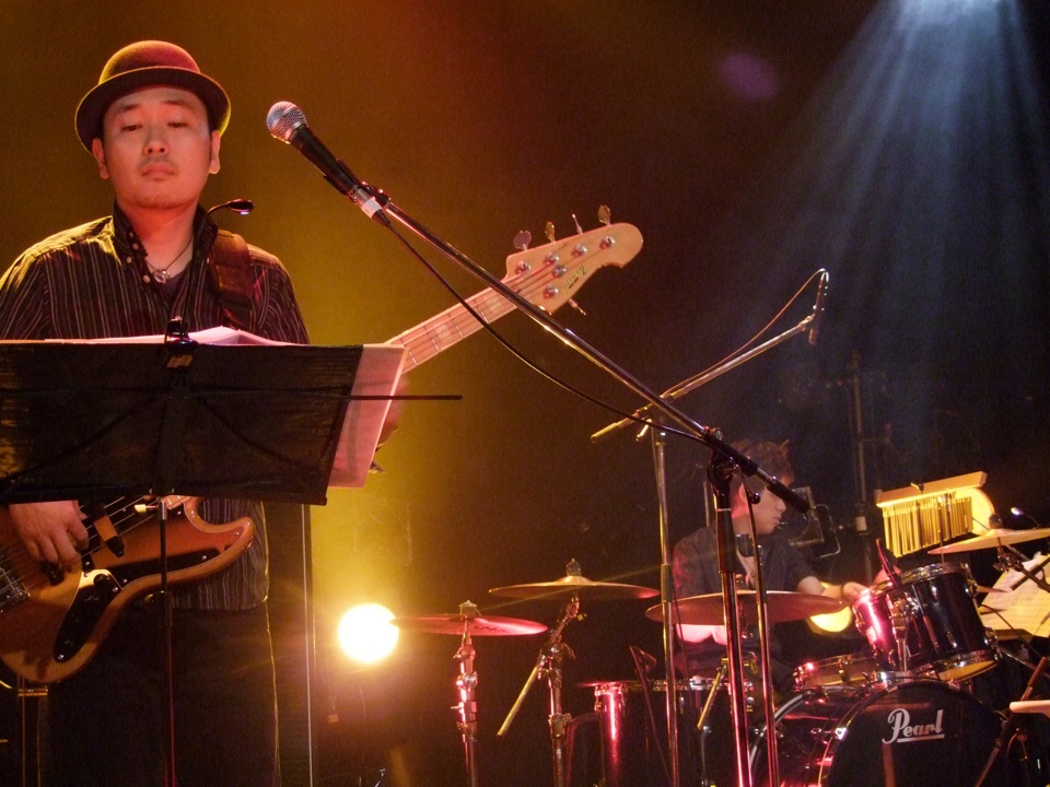 そして今月の新曲は、“N”という曲でした。なかなか抽象的なタイトルでですが、本人に聞くと特に意味は無いと言われてしまう(笑)この曲、目玉は何と言っても、ベースの相澤卓也さんがボーカルも担当するという事です(右上写真参照)。…とは言え、デュエットという感じの構成にはなっていなく、ちょっとしたハモりと、歌のサビの部分で掛け合いが行われる…という程度にはなっています。