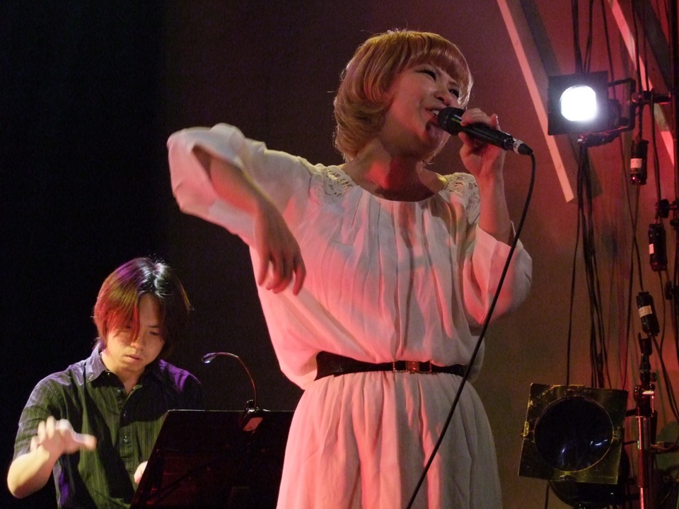 1曲目に“Game”、2曲目に“Destiny”と、彬子さんのお馴染みのオリジナル曲が続きますが、この“Destiny”に関してはアレンジを変え、少しボサノバっぽい雰囲気で、優しく柔らかい感じで演奏していきました。メロディの大元は変わっていませんが、バックの演奏や歌い回しは結構変えたので、とても興味深く聴けたのではないでしょうか。このように、今まで出来上がっていた曲を更にアレンジを変えて演奏するのは、今回が初めてでしたが、なかなかの手応えと新鮮感があったので、また機会に巡り合えたら考えてみたい事柄だとも思いましたね。