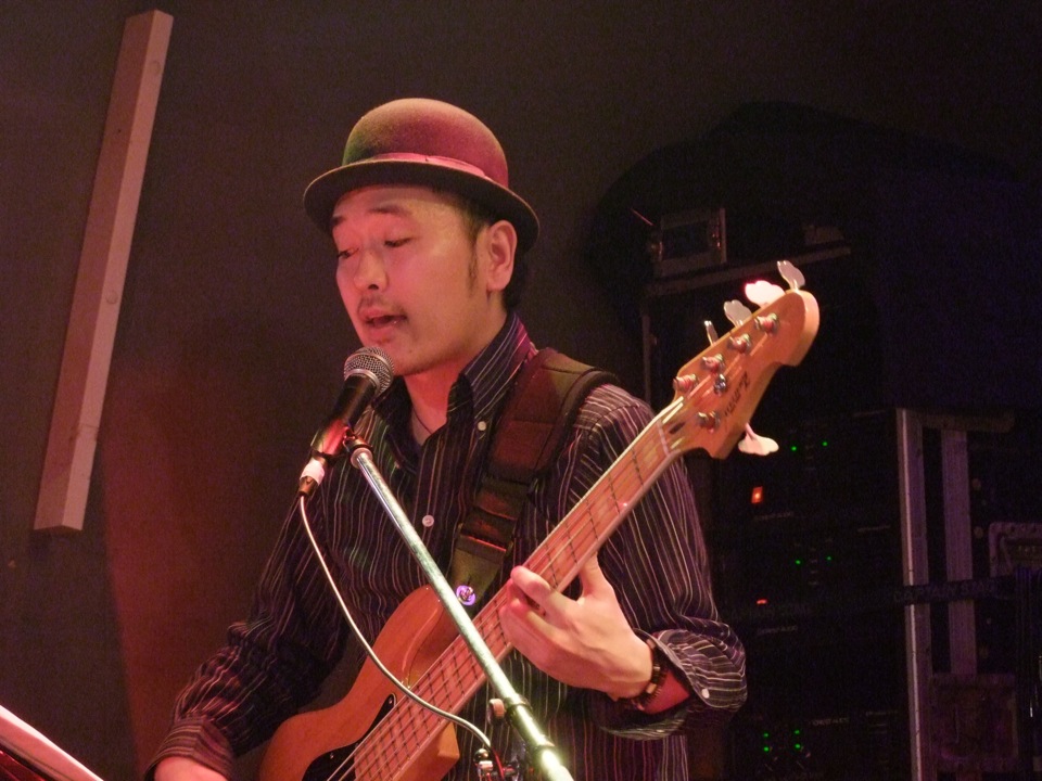 ただ、大きな違いは、今回も前回と同じく、ギター抜きの4人編成でライブを行ったという事でしょう。このお店では初めての試みですが、それ故ステージ上でのキーボードの位置が、従来のギターの位置に移動してみる等(下手→上手)、意外に雰囲気的な大きな変更点が出ていたのではないかと思います。無論、お客さん側から見た場合は、真ん中にボーカル、そして下手側にベース、上手側にキーボード、奥にドラム…という配置になっているので、バランス良い感じでご覧頂けたのではないかと思います。
