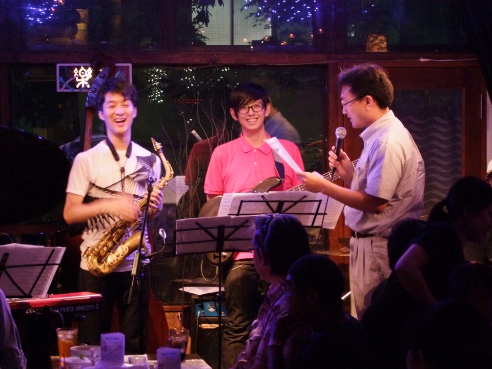 せっかくなので、普段はピアノがアドリブをとる部分はサックスにとって貰い、ラスト直前の部分で、ピアノとサックスのソロの掛け合いを繰り広げていきました。勿論、その前にはドラムの迫力あるソロもあったので、本当に見所が沢山のバージョンが出来上がったと思います。お客さんも大変盛り上がって頂けて、大きな拍手がお店を包み込みました。本当に、感謝の気持ちで一杯の時間でした。