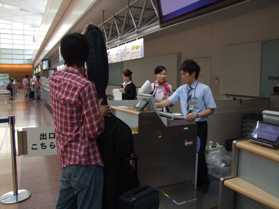 池田君は他にスーツケース、トシさんはスティック・ケースに大きめのリュックと、それなりに多い荷物ではありましたが、自分はというと、ポーチにいつものカバン1つという、他の2人に比べると相当身軽な格好です。自分は楽器が無いので、3日間くらいの行程だとこれで済んでしまうのですが、これが旅慣れているのか、手抜きと見られるかは、人によってそれぞれな気もしてしまいます(笑)。