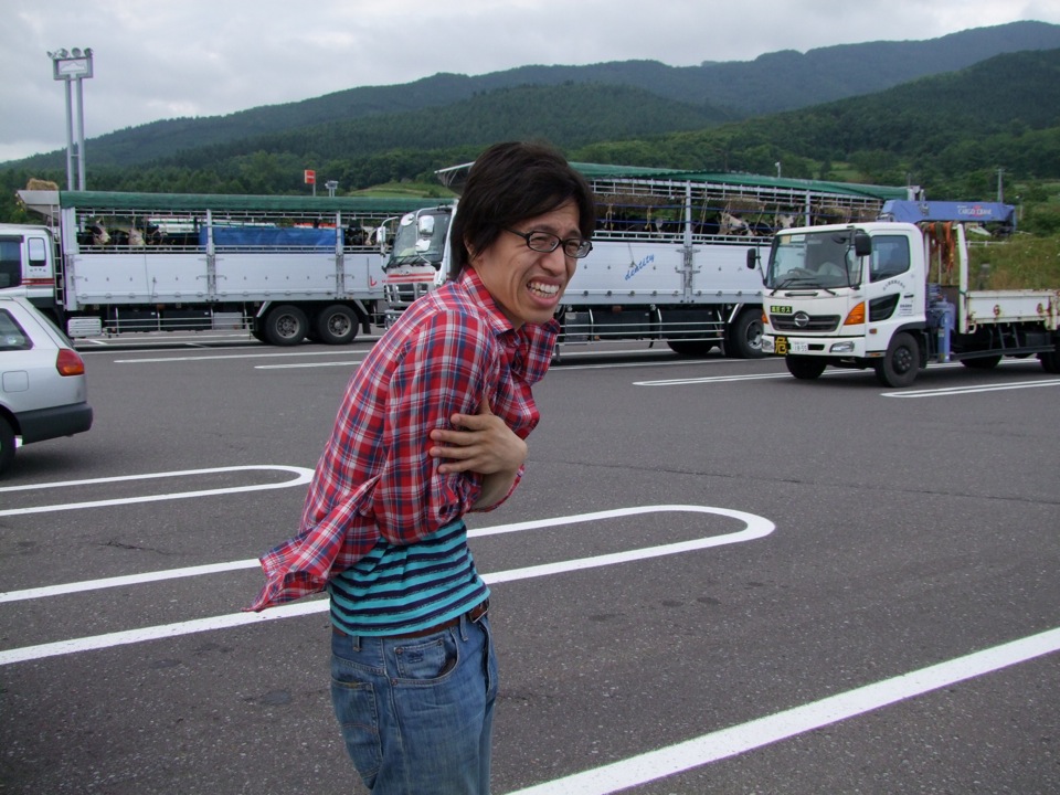 途中、ドライブインには寄ったものの、支笏湖は車で脇を通っただけだったので写真はありませんが(笑)、道中は北海道の山中の自然の真っ只中…という感じでした。その間というもの、車の中は自分達はお喋りばかり…(笑)。池田君がトシさんに話しかければ、それにトシさんが答え、自分がそれに便乗し、更に郷原君が右斜め上的な話しになり、それを池田君がツッコを入れていく…。大体こんな流れの車中が続いていきました(笑)。絶妙なトークのバランスだったと思います。