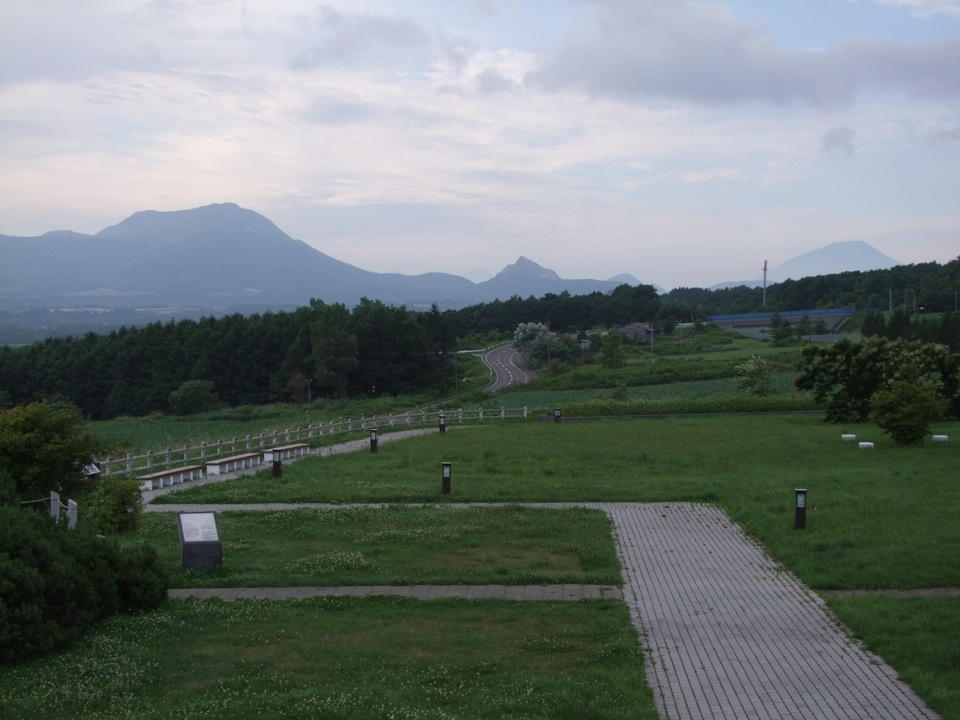 ここから車を走らせて、約1時間ぐらいだったでしょうか。この間、流石に自分達は眠ってしまっていましたが、とあるサービス・エリアで車が停まりました。ここは有珠サービス・エリアという所で、伊達市が望めるポイントでもあり、しかも他の山々も見えたのですから、寄らずにはいられなかったのでしょう。自分は昨年の10月にこの付近を案内させて貰っていて、流石に高速道路のサービス・エリアからの眺めではなかったのですが、そんなに遠く無い所に海が見えたのを覚えていて、ああ、この風景だ…と思ったものでした。あの時とはまた見せる風景も違い(そもそも季節が異なるので、当然かもしれませんが…)、北海道の自然の奥深さを感じさせると共に、伊達という街の育ち方も窺えるような、そんな眺めでした。