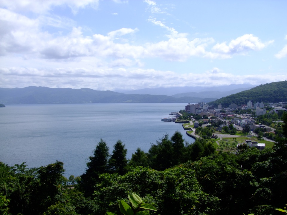 この日の天気は本当に良く、雲はあるものの青空が壮大と言って良いくらいに広がっていて、山々の緑は勿論の事、海や湖などの青さが本当に引き立っています。自分が前に来た時は曇りがちの天気だったので、昨日見た伊達市の街並み同様、天気で随分と印象は変わるものだと思いましたね。池田君はこの風景が初というので羨ましい限りですが、トシさんは今回で3回目なのにも関わらず、こんなに天気が良かったのは初めて…との事でした。素晴らしいライブ日和に恵まれていたのかもしれません。