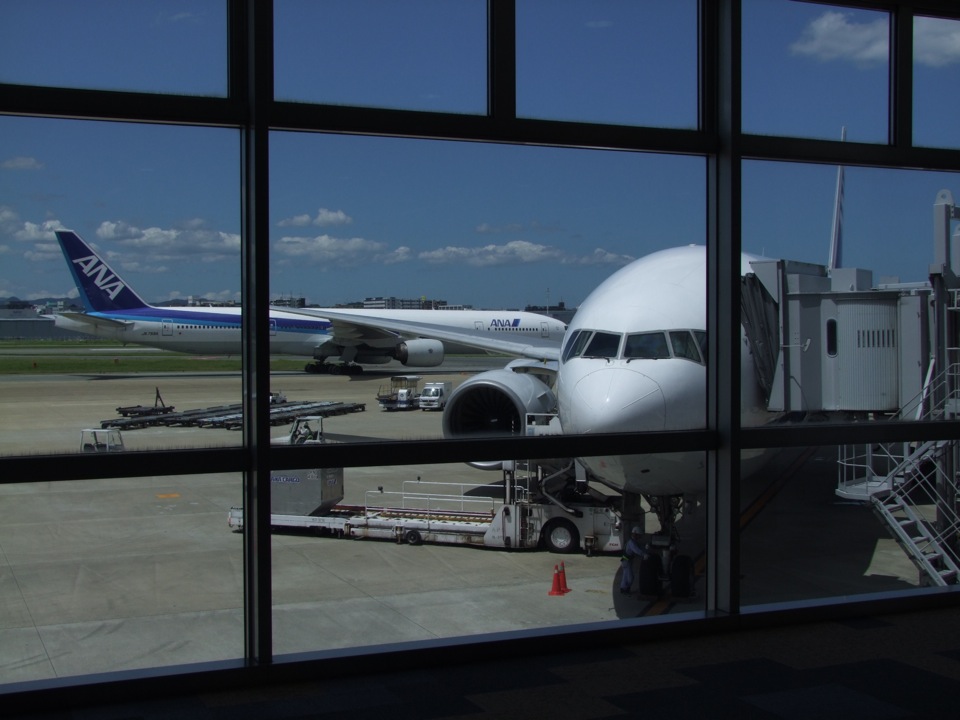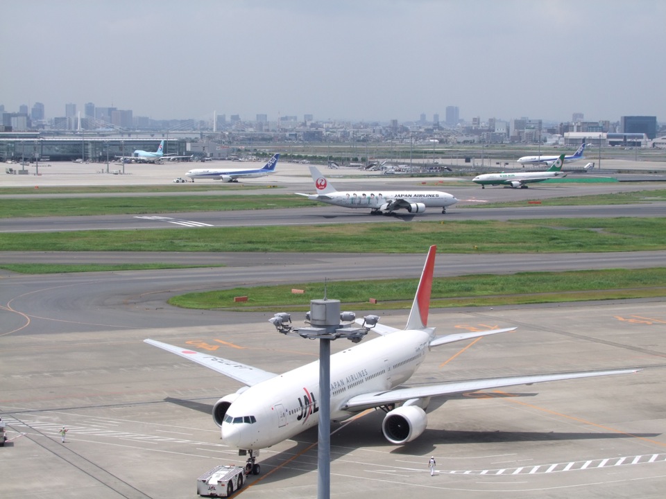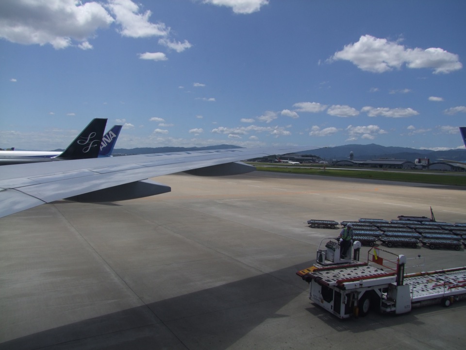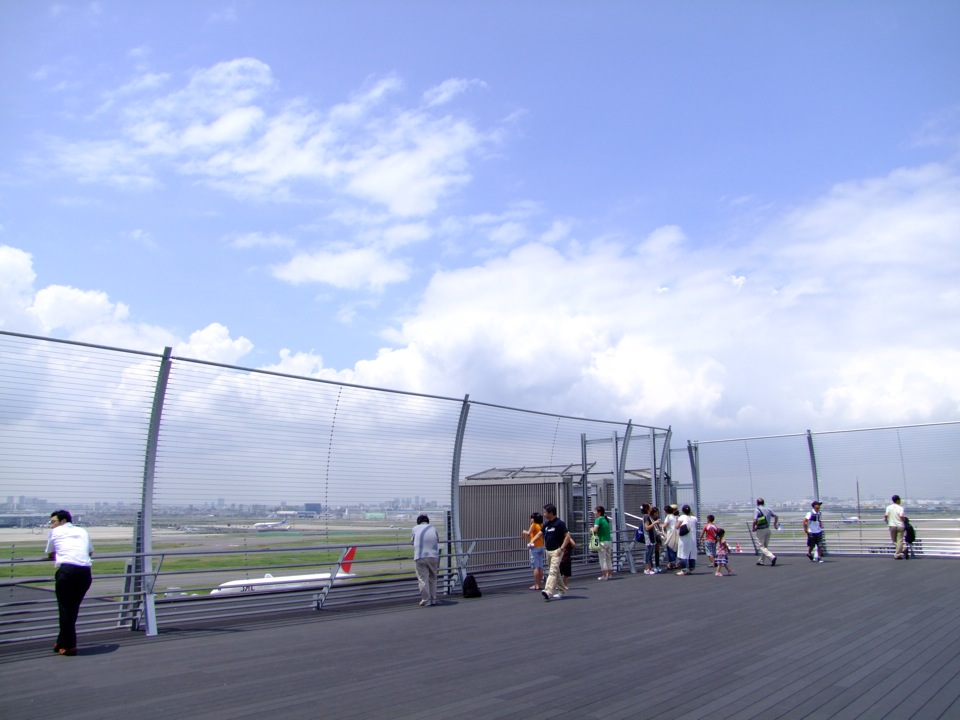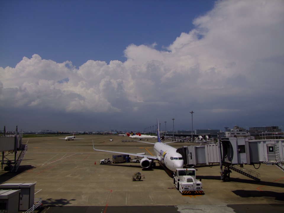 そもそもこの時点で今日か明日には台風が接近する事が分かっており、行けるには行けるとしても、帰ってこれない可能性を誇示されての訪問となっていたので、ある程度の覚悟は出来ていたつもりでした。しかし、この日の東京は良い天気で、写真の通り、夏の空が広がっていた光景を目にしてしまった事もあって、どこかで「大丈夫」だろうとも思っていたのでしょう。新しくオープンした、空港第1ターミナルの展望デッキにて、そんな気楽な自分がいたものでした。