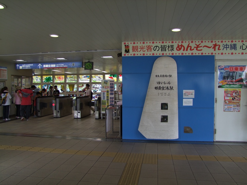 赤嶺駅は終点では無く、路線の途中に位置する駅なので、想像し辛いのですが、那覇空港駅を発車した列車は、まず南に進路を取り、暫く進んで東に方向を変えて、この赤嶺駅に到着するのです。その後、やや北東に進路を向けるので、結果的にこの赤嶺駅が日本最南端の駅になっているのですが、実際“結果的”であるので、この駅に着いたところで、何か特別な催し物があるわけでもありません(笑)。しかし、駅の南側にあるロータリーには、日本最南端の駅記念碑が建てられていて、さり気なくその事を主張しているようでした。この記念碑を写真に収め、再度列車に乗り込み、美栄橋駅近くのホテルにチェックインをさせます。