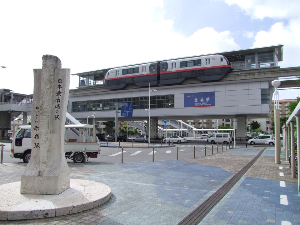 ホテルがある那覇市内に向かう手段として、個人的に恒例利用化しているのが、沖縄唯一の鉄道である“ゆいレール”ですが、ここで1ヶ所だけ寄っておきたい場所がありました。沖縄にこの鉄道(モノレール)が完成してから、日本の鉄道の最南端駅、最西端駅はこちらに移ってきたのは想像出来ると思いますが、最西端駅の那覇空港駅は何度も利用しているものの、最南端駅である“赤嶺駅”は、まだ降りた事が無かったのです。
