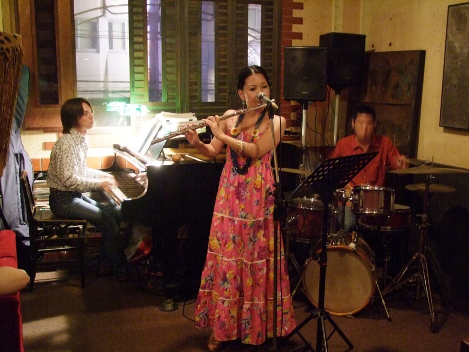 少し寄り道をしたので、予定よりは遅めの到着になりました。そんな時、西仲さんから夕食のお誘いを受け、その分リハーサルも早めにするという事なので、あれよあれよという間に、自分は寓話の人となっていました(笑)。西仲さんや和丸君とはここで落ち合い、明日の便をどうするか…とか話しながら、軽くリハーサル(サウンド・チェックですね)を行い、夕食に向かった先は、前回のツアーでも寄らせて頂いた、Cafe Smooth でした♪
