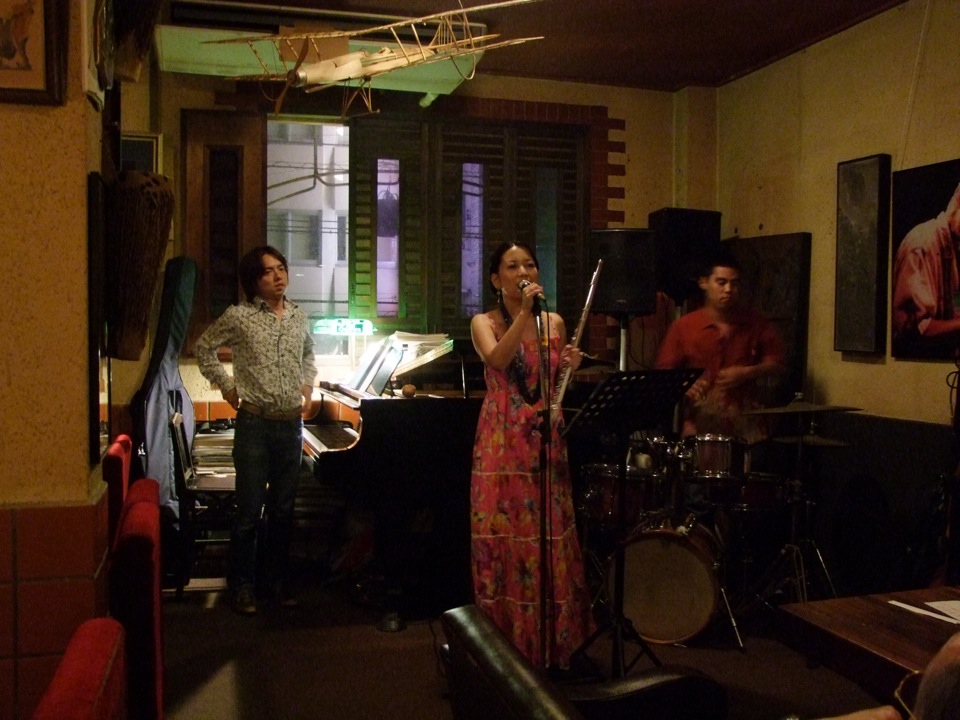 この日も西仲さんのオリジナル曲、そして沖縄民謡のアレンジ曲を中心に、2ステージお送りしました。勿論“aka is. funky”もやりましたし、充実した時間を過ごせたと思います。終わってみれば短かったですが、CDを発売させた喜び、そしてここでライブが出来る喜びは、全て演奏にぶつけたつもりです(笑)。台風接近という、本当に危なっかしい状況でのライブとなりましたが、結局まだ雨は降っておらず、無事に終了する事が出来ました。本当にどうもありがとうございました!…勿論、西仲さんと和丸君は、明日以降もまだまだツアー演奏が続いていくという事で、楽しくやっていければと思います。