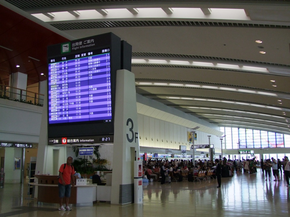 8月の休み時でもあるので、羽田空港は結構な混雑状況となっており、予想通り飛行機は幾分が遅れての出発となりました。荷物検査上の混雑で、まだ機内に辿り着けていない乗客が何人かいた為です。まあ、混雑期のお馴染みの光景でもありますが、今回は沖縄に着いてから少し時間に余裕があるので、こんな状況でも特に気にするわけでもなく、とにかく沖縄にさえ着いてくれれば、それで満足でした。
