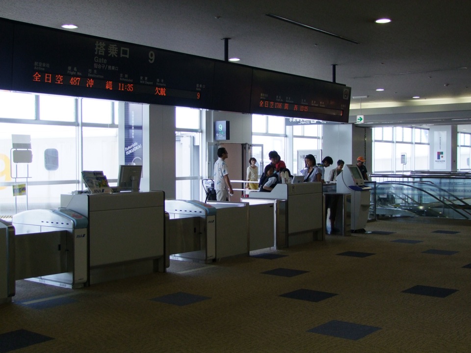 そして、自分の乗る福岡空港行きの便ですが、ちゃんと、“搭乗手続き中”と表記されていました!…これで安心♪…と言いたいところですが、搭乗ゲートに飛行機はまだ着いていないようで、調べるに、羽田空港から到着した便が折り返して、福岡空港に出発するという機材繰りになっているようでした。