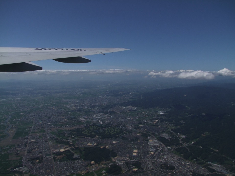 西仲さんに、無事に東京に戻れそうですと一報を入れ、後は機内の人となりました。自分と同じ考えを持った人が何人かいたのか、出発する直前になってお客さんが増えてきた事もあり、飛行機は20分程遅れましたが、風の強い中、飛行機は滑走路へと向かいます。後は離陸するだけですが、台風を背にするように北に向かって滑走を始め、流石に風に煽られながらの離陸ではあったものの、スピードと高度さえ上がればこちらのものです。フライトは順調そのものだったと思います。
