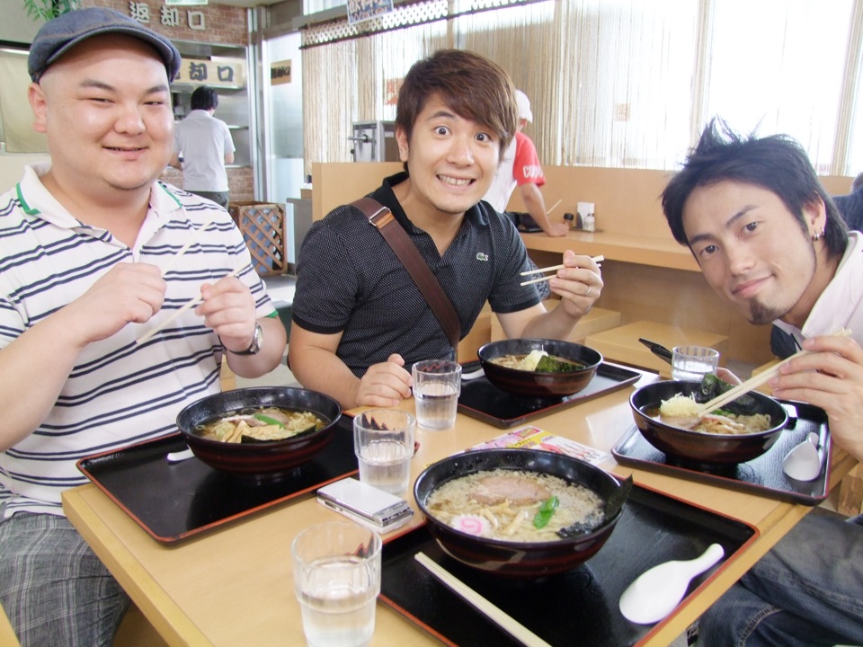 途中の佐野SAにて、ドラマーの伊藤隆郎さんと合流し、ここは恒例の佐野ラーメンを堪能します。しかし、トランペットの織田祐亮君は、この1日前にも福島からの帰りで食したそうで、なんと2連続の佐野ラーメンだったとか…。これはなかなか珍しい状況ですが、佐野ラーメンの中にも“こってり”や、“生姜入り”等、種類が幾つかある事が分かり、それぞれにバリエーションを付けて楽しんだものでした。