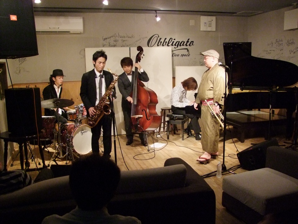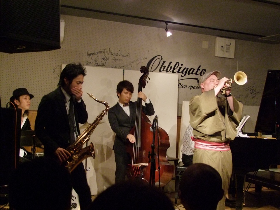 しかし、やはり“ジャズ”というジャンルではあるので、アドリブ演奏を重視している事も見逃せない部分であり、曲の盛り上がり方というのは一長一短には説明出来ません。どうしてもそれはその場の演奏次第によるものが大きく、当たり前の事なのですが、ライブ時の一体感が大事になってくるのでしょうね…。ただし、それらも含めて新鮮味が沢山のライブであり、曲の広がりというのも、自分が把握していた以上の展開になる事もあったので、テンションも上がってくる一方でした。自分はあまり演奏中には汗をかかない方なのですが、この時は本当に、服が濡れていくのが自分でも分かる程、結構な汗をかいていたように思います(笑)。
