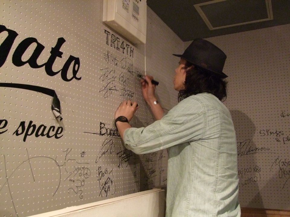 特に後半はお客さんも立ち上がってきて、身体を大きく揺らし始め、これぞクラブ・イベントのような状況になってきました。自分達が音で応じると、すかさずお客さんも掛け声をし始めたりと、それぞれの攻防が続いていくような時間です。それはアンコールにも反映され、予定の中の1曲を終えた後、更に追加してあと2曲も演奏をし、もう全員、全ての力を使い切ってしまいました…。皆、汗はだくだく、身体はヘトヘトでしたが、心地良い爽快感と、楽しかった気持ちが中から溢れてきて、本当に良い時間を過ごせたなと改めて思う事が出来ました。ライブ後は、CD販売等も兼ねて(何故か自分もサインをするという…笑)お客さん方と話す機会がありましたが、それもまた地元の方達との触れ合いを言葉等で感じる事ができ、ライブとはまた違った、良い時間だったと思います。