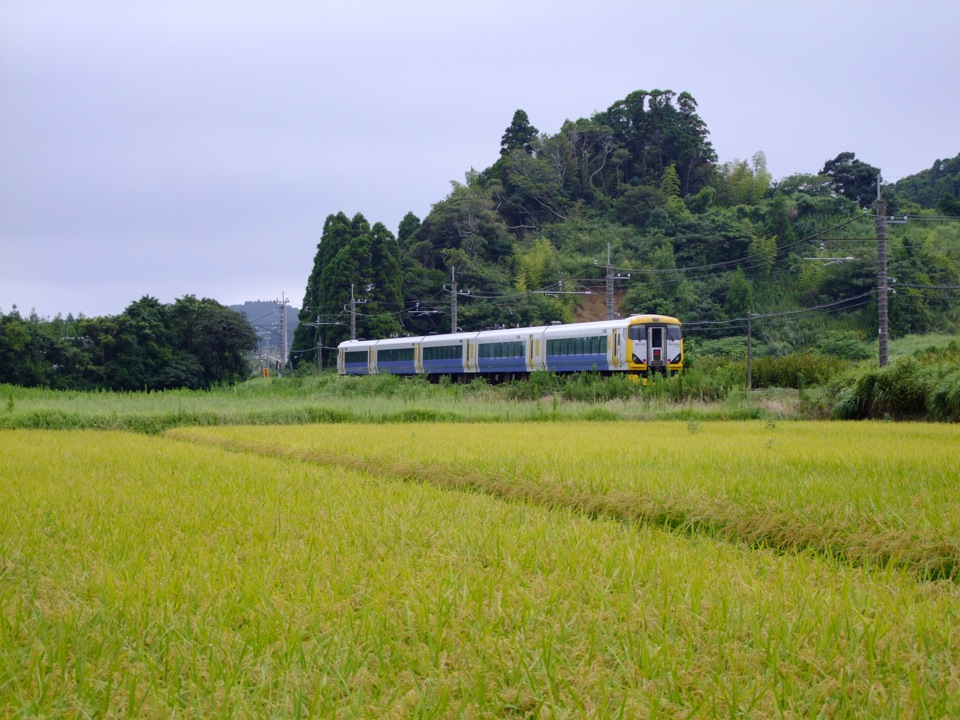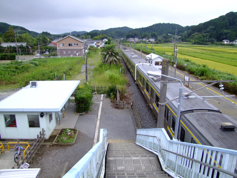 大網駅を出ると、今度は平坦な路線となり、列車は快適にスピードを上げ、小さな駅を2つ過ぎると、高架の茂原駅に着きます。沿線の宅地化はこの辺りまでで、東京への通勤圏内も、この2つ先の上総一ノ宮駅くらいまででしょうか。例の京葉線直通列車も、東京駅から上総一ノ宮駅まで1本で行けるような設定になっているので、この辺りが乗客の流れの1つの境界線だと見ても良そうな気がします。