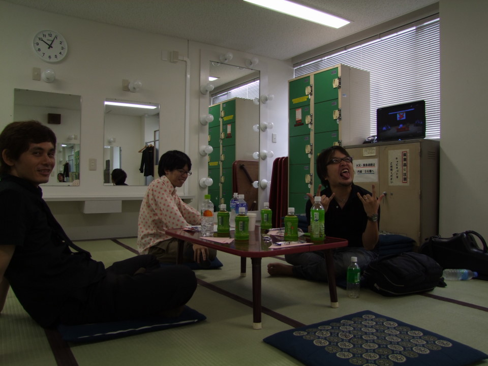 楽器は殆どが持込みだったので(流石にグランドピアノはありました)、講義のリハーサルが行われてる中でセッティング(笑)、この時点で既にバタバタでしたが、9:30頃にはリハーサルを終えられ、そして講義の為のステージの明け渡しが出来ました。そして、演奏時刻の10:45頃まで暫しの休息です。副田君は、自分以外のメンバーとは初対面だったので、この時に初めましての挨拶がやっと出来たくらいでした。