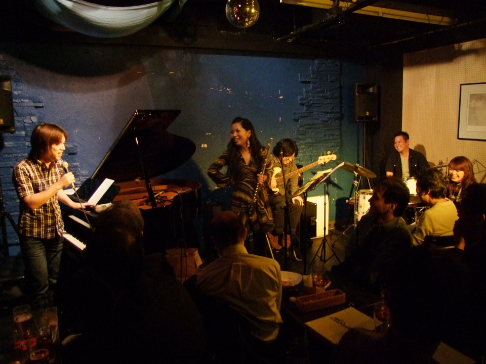 思えば自分は、2007年の11月に西仲さんと初共演を果たし(その時のブログ記事は残念ながら書いていませんでしたが…)、カルテット編成になってライブをやったのが、2008年3月の事〔竹内大輔の写真日記(~2009)、いつもとは違う Ami`s Bar 参照〕。記事を見返すと、この頃から“てぃんさぐぬ花”を演奏しているのには驚かされますが、大きく変わったのはやはり、初の西仲さんのオリジナル曲、“Aka Is. Funky”を演奏したライブ〔竹内大輔の写真日記(~2009)、西仲美咲カルテット、初のオリジナル曲演奏参照〕からではないでしょうか。よりオリジナリティを…という方向になってきたのでしょう。そして、カバー曲の方向性というのも、徐々に洋楽ポップス系から沖縄民謡系に変わってきて(笑)、今ではそのスタイルは恒例のものと言いますか、むしろ外せない側面にまで成長してきました。これこそ、長く拘り続けてきた事の証ではないでしょうか。そして先日の Obsounds のライブで、しっかりとそれらを証明出来たと、個人的ながら自負しております。