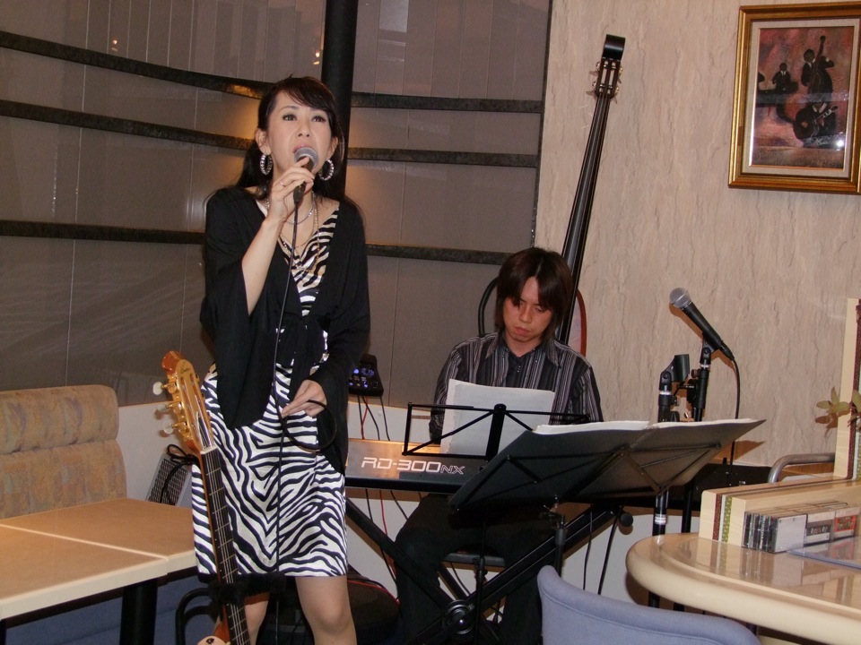 しかし、自分達のペースに持って来れば、こちらのものです(笑)。…と言いますか、この日はお客さんの中で、このライブの後に婚姻届を出しに行くという、何ともお目出度い話しをして下さった方がいまして、お店からも景気良くシャンパンが振る舞われまして、自分も勿論飲み干しまして(笑)、一気にスタート・ダッシュが掛かった状態になってしまったのです。恭子さんとの共演は8月以来だったので、若干この日は久し振りという状況でしたが、やはり長年培ってきた共演期間を武器に、リクエストにもすぐ応じ、楽しく進める事が出来ました!