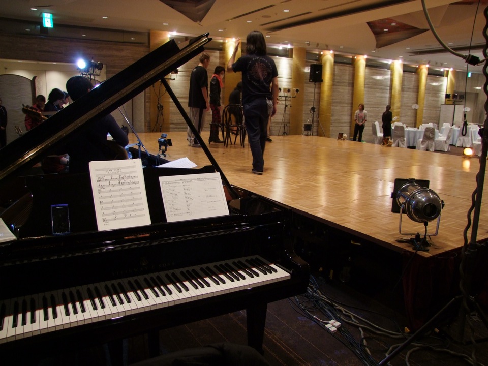 こういった夢輝さんのディナーショーの特徴として、わりと曲を繋げていくといったものがあるのですが、今回は本当に、曲を最後まで繋いでいったような印象がありました。実は演奏者にとって、曲間のバランスというのは状態で、勿論、繋げていくのは構わないのですが、あまりにも繋げていくと、次の曲への頭の切り替えが大変になってしまい、かなり神経を尖らせて進めざるを得なくなってしまうのです。しかも今回はその進行且つ、4曲を繋げたメドレー曲というの物も存在し、更に負担は大きくなってしまいました。更に夜の部では、その数少ないMC中で、ピアノの伴奏がバックに少し欲しい…みたいな提案を言われてしまいまして(笑)、変な話し、自分はステージ・ドリンクにすら有りつけないような状況でもありました。まあ、自分はあまりステージ・ドリンクを飲まない方なので別に構わないのですが(笑)、とにかく、自分で自分を褒めてあげたいステージでもありました…。