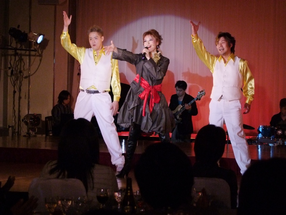 今回のディナーショーの特徴は、やはりその出演者の豪華さです…。夢輝のあさんを筆頭に、秋園美緒さん、鳴海じゅんさん、大真みらんさん、桐生園加さん、KOJU さん、ASUKA さん…。そして演奏陣に、自分と、ギターの後藤郁夫さん、ベースの大森輝作さん、久々のバイオリンの Tsumuzi 君、コーラス・パーカッションで北條馨梨さん(今回のディナーショーのプレゼンターでもあります)。そして、今回が初めての参加となるドラムの木村創生君です。ざっと12人という陣容です!…そして、それぞれが主役になりうるステージでもあり、今までの中でも特に内容の凝ったものになっていたと思いました。