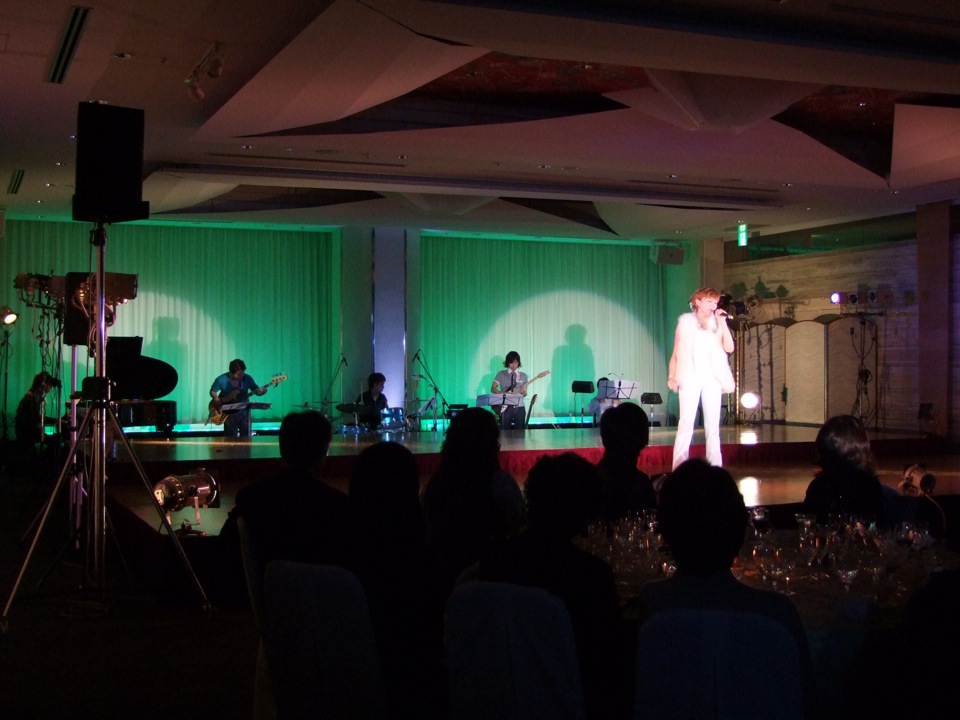 それは、会場に組み立てられたステージの大きさを見ても明らかでした。ざっと見ても、今までの2倍以上の広さは用意されていて、今回のコンサートは正に“ショー”である事を窺わせてくれるような状況でした…。演奏者の位置は、お客様側から見て、そのステージの背後に用意されおり、前方から見ると目立たない位置なのかもしれませんが、冷静に考えると、ステージ全体を見渡せるバランスの良い位置だったようにも思います。歌を歌う側としても、バランス良く音を取れるような位置関係だったのではないでしょうか。