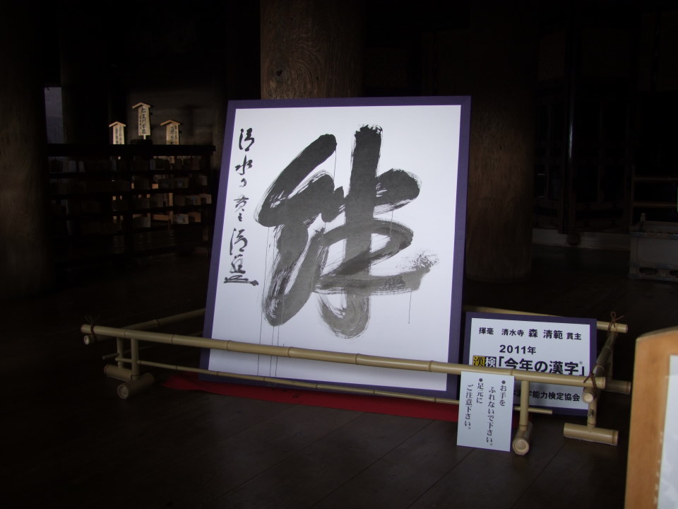 先日、自分は京都を旅行し、清水寺では今年の漢字である『絆』を生で見てきました(行ったら偶然あったんですけど…笑)。今年1年を表す一文字として選ばれた『絆』。これに関しては色々思う事があるかもしれませんが、ある意味で今の日本を表しているような気がします。何だか次の1年が試されている字のような気もしてしまいましたが…。