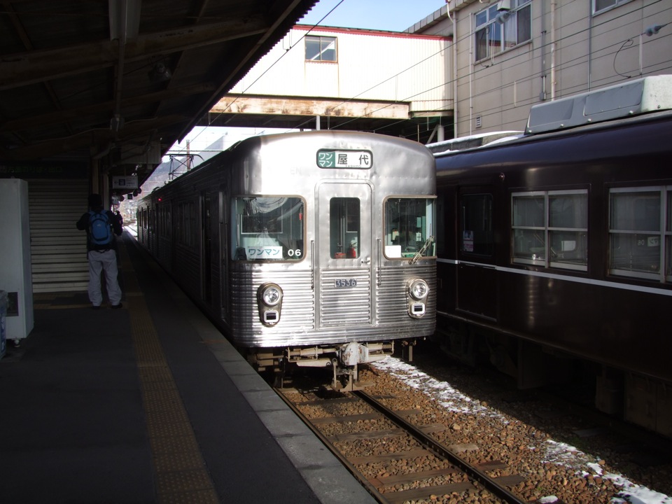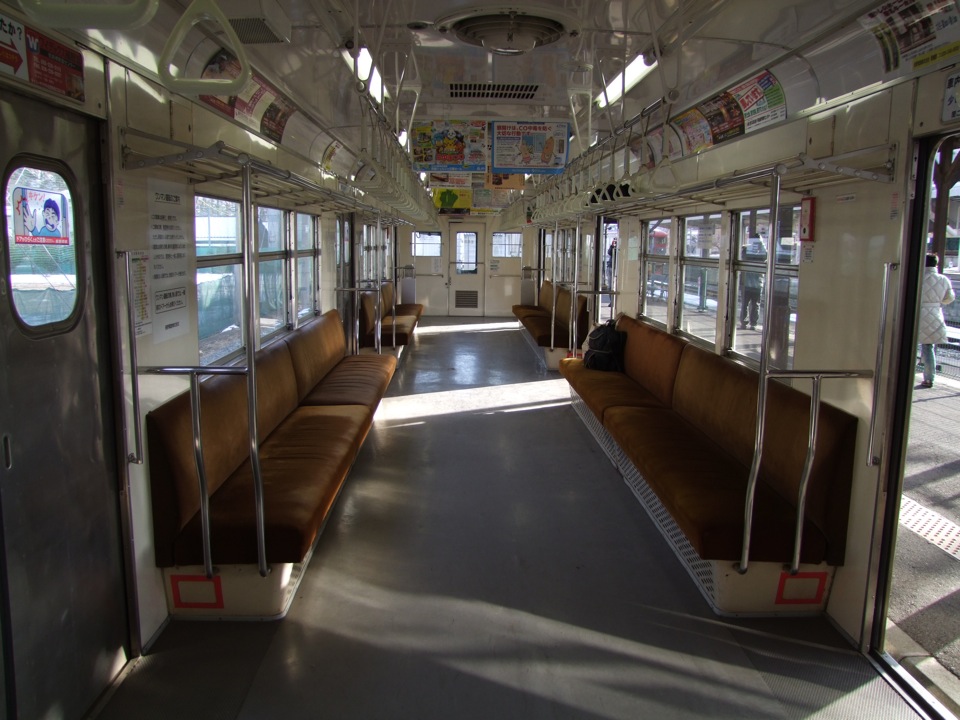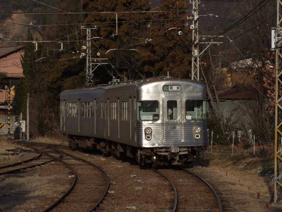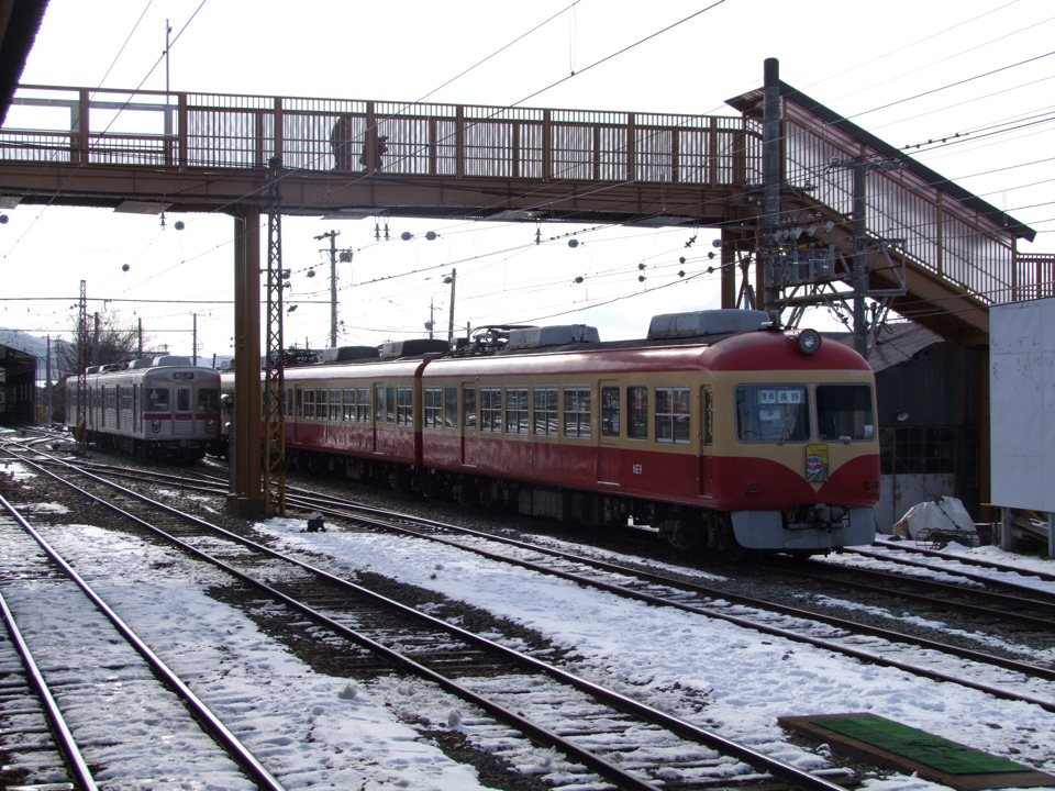 さて、例の屋代線に移りましょう…。先程、長野電鉄には元日比谷線の車両が活躍していると言いましたが、その際に長野電鉄のカラーである赤い線が引かれていて、少々の変化がある状態で活躍していました。しかし最近になって、屋代線で主に使われる車両からその赤い線が取り除かれ、正に日比谷線時代そのものの姿を楽しむ事が出来るようになったのです。そろそろ廃線になる屋代線に因んでのリバイバル化…とも言えそうですが、そういえば日比谷線の開通当初は、まだ2両編成という状態で走っていたので、生まれた当初の編成で活躍している…とも言えるようになり、何だか原点回帰のような雰囲気がありましたね。殆どの車両が冷房化改造を受けている中、この車両は非冷房のまま廃車になってしまうらしいですし、生まれたままの姿で現役を退けられるというのも、車両にとっては本望なのかもしれません。