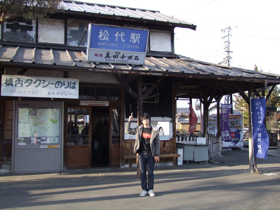 さて、長野電鉄の旅もそろそろ終わりを迎えます。屋代駅から引き返して、途中の松代駅までは20分も掛からない行程でした。松代駅は、屋代線の途中駅では一番大きい駅でもあり、唯一駅員が配置されている駅でもあります。名残惜しいと思いながらも、そこで電車を見送り、いよいよ須藤君達と合流しました。向こう的には、そんな電車を記録に留めている自分の晴れ姿を、しっかりとカメラに抑えていたようですが…(笑)。