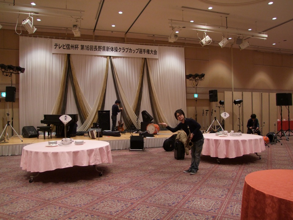 今回のパーティー演奏は、新体操を習っている子供達向けに用意されているという部分が大きくあったので、やる曲は正に“今”の曲達ばかりです。それは嵐の“Monster”であったり、AKB48の“フライングゲット”であったり、踊りも子供達に踊って貰った“マルマルモリモリ”であったわけですが(笑)、予想以上に白熱した会場が素晴らしかったです。若干圧倒されてしまった部分もありましたが、ベース須藤君、サックス副田整歩君、ドラムの亀井孝太郎さん、そしてピアノに自分の4人のインスト編成で、見事にやり切りました。子供達の盛り上がり状態に助けられたところもありましたが(笑)、とても楽しんでくれたようで、本当に良かったです。演奏時の写真はありませんが、熱気溢れる、凄まじい状態であったと書き加えておきましょう(笑)。