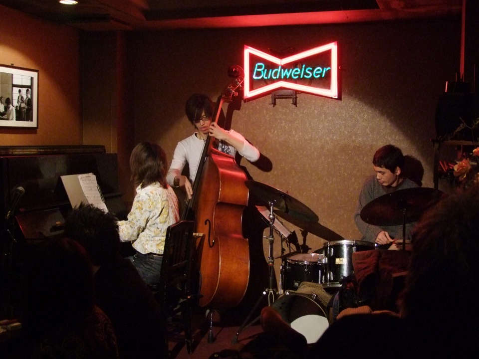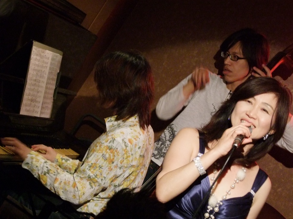 そんな2012年最初のライブは、ここでは通常と言える、ボーカルを交えてのカルテット編成となっていました。リズム隊こそお馴染みの、ベースが池田暢夫君、ドラムが大島洋さんという感じでしたが、ボーカルには初顔合わせの黒田まこさんという方をお迎えしており、慣れた場の上での新鮮味と言いますか、バランス良い刺激の中でのライブとなりました。