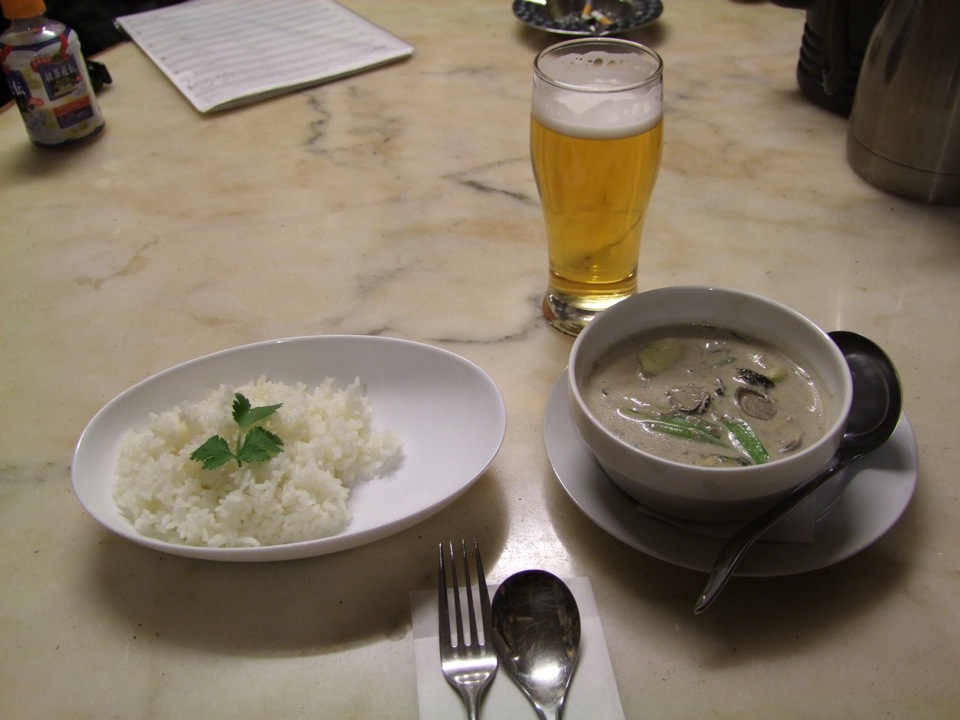 久し振りの楽屋でもあるので、看板メニューでもある(個人的に…笑)グリーンカレーを頂きつつ、対バンの音楽にも耳を傾けつつ、自分達の出番を待ちます。曲的には殆どが今までやった曲ではありますが、1年間もブランクがあるので気は抜けません…。特に、Tsumuzi 君の曲は変拍子やリズムの変化等、クセのある曲が多いですから(笑)、本当に頭の中に叩き込んでないと表現出来る筈も無いのです。