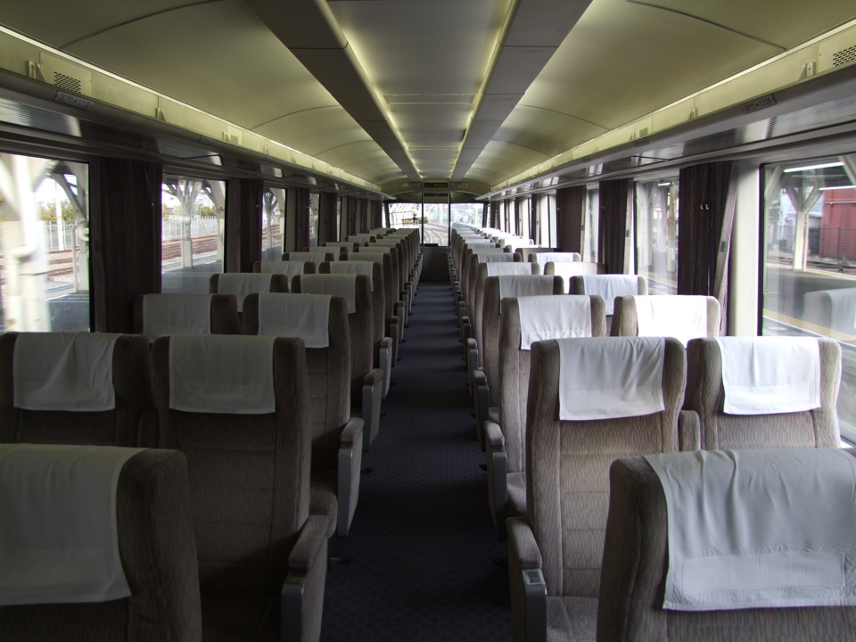 “あさぎり”号は基本的に全車指定席ですが、御殿場駅~沼津駅間に限り、7両編成の内の6号車にだけ、自由席が設定されます。つまりは、乗車券と特急券だけで乗れてしまうわけですが、この特急券が安く、310円に設定されているのです。やはり“あさぎり”号のメインの乗車は、新宿駅~御殿場駅なわけで、その先の空いている区間を、気軽に利用して貰おうという考えがあるのが分かりますが、実際、かなりガラガラな車内でもありました。自由席に設定された6号車の乗客も15人程度で、その隣りの7号車の車内を見てみると、乗客は皆無でした…。確かに、御殿場駅~沼津駅間が廃止になるのも仕方無いのかな…とも思ってしまう程でした。