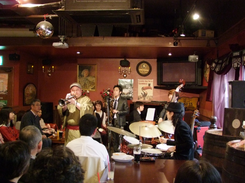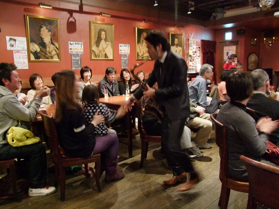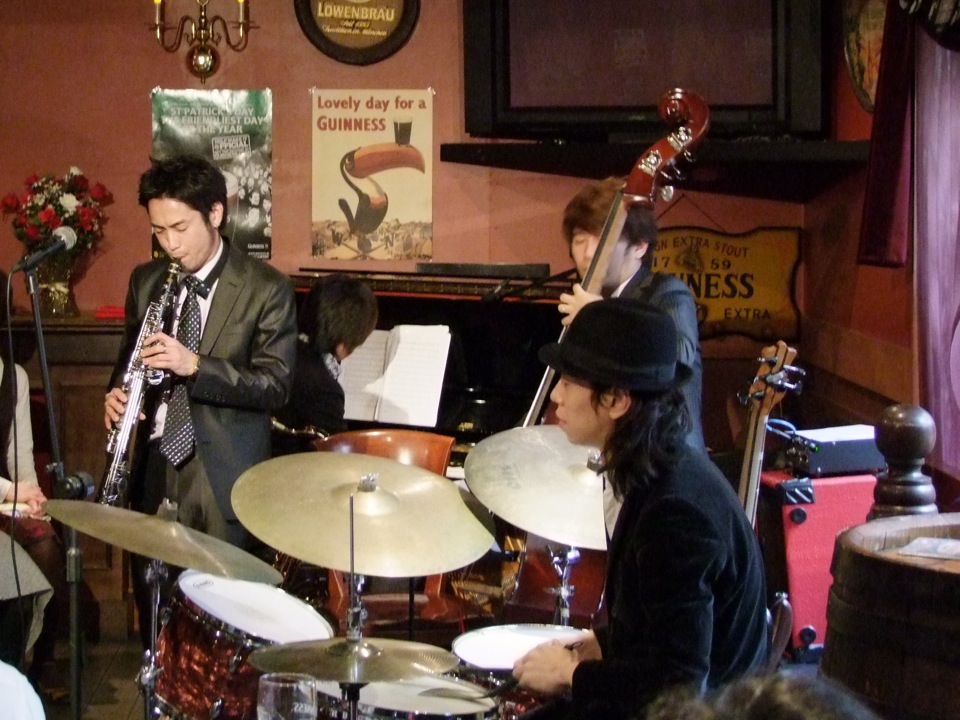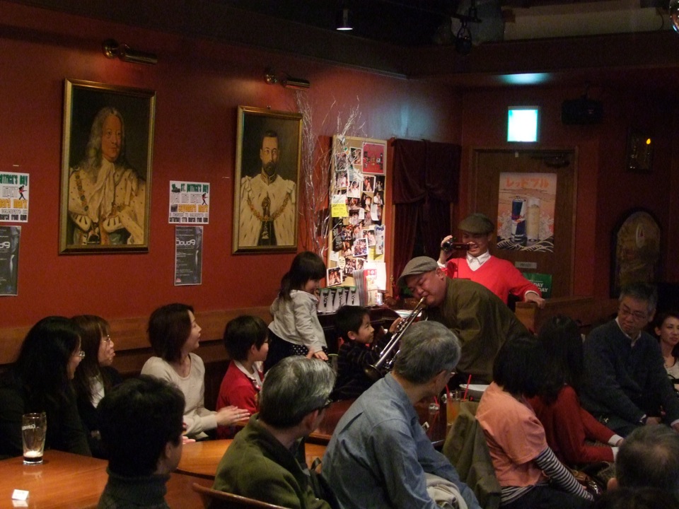 この日のライブは日曜日という事もあってか、昼の14:00から1ステージ目が始まりました。自分達にとっては珍しい時間帯ではありますが、昨年発売したCD『わらべ JAZZ』を発売してからというもの、前々からやってみたかった時間帯のライブでもあるそうなのです。やはり、CDのテーマがテーマだけに、特に聴いて欲しいのは、童謡に一番身近な年齢層でもある子供達…。この日は、そんな子供達にも足を運んで貰えるような時間帯に設定されたライブであると共に、本当に特徴的な雰囲気にもなっていたように思いました。良い経験だと思います。曲は『わらべ JAZZ』からのものを中心に、TRI4TH オリジナル曲も交えてお送りしました。