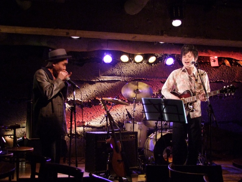 今回は、秋山葉さんというシンガー・ソングライターの方が企画したイベントとなっていたようで、この方も Big Mouth によく出ている方なので、何となく自分とも面識はありました。…と言うより、今回出演した方々は、自分も含めて全て Big Mouth に出演した事がある方のようで、知らぬ間に擦れ違っている人ばかりだったのです。星野君自身のステージでは、自分とのデュオ編成での出演の他に、ブルース・ハープのタケちゃんさんという方とも曲を演奏しており、この方も Big Mouth ではお馴染みの方だったので、いつしかこの場所が、吉祥寺だか下北沢のお店なのだか、よく分からなくなってきてしまったのでした(笑)。