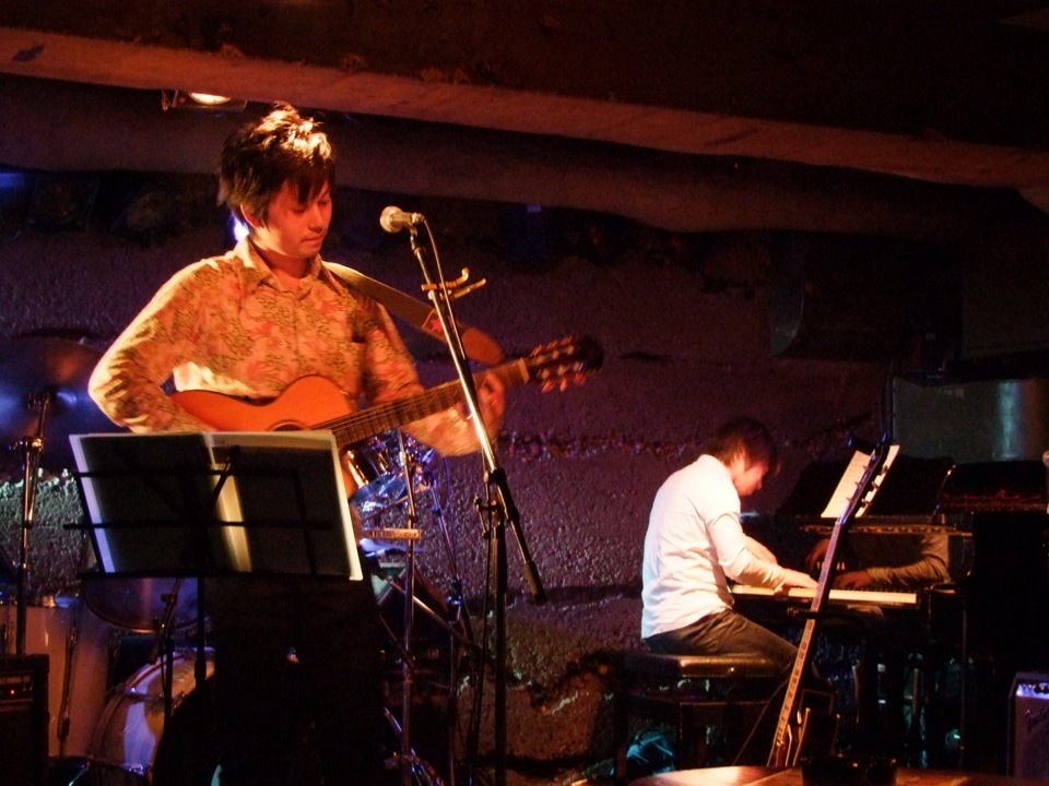 …星野君は、岩手県は大船渡市の出身です。…ここまで言えばお分かりかと思いますが、やはり昨年に東北一帯を襲った大地震は彼に大きな影響を与えたようです。実は前述レコーディングというのも、その故郷に向けたものであるらしく、自分に何か出来る事は無いかと考えた時に、出てきた答えのようでした。そのプロジェクトに参加させて頂けた事は有難いですが、まだ作成段階の途中にあり、出来れば録音前にライブもやっておきたいというのは、自然な流れなのかもしれません。今回の Manda-la 2 でのライブは、縁が縁を呼んで実現したライブでもあったようですね…。