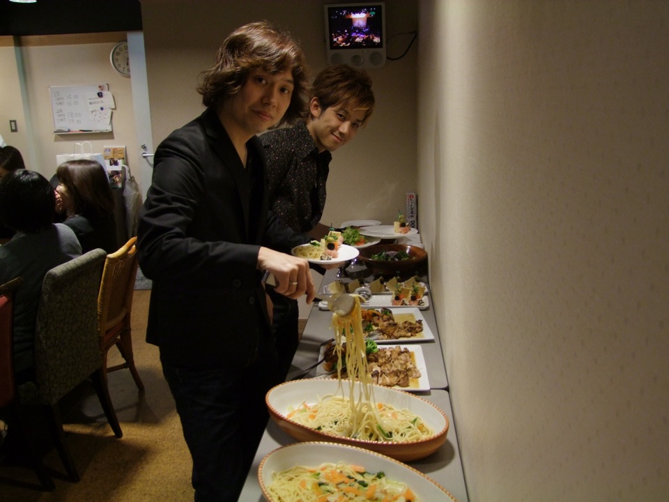そして当然の如く、打ち上げも盛り上がりました。今回のライブを企画して下さった、愉快な新聞記者の方や、出演者の誰より明らかに目立ってしまう美容師の方など、こちらもバラエティに富んだメンバーでお送りしたライブ(打ち上げ)でしたね(笑)。ここではサプライズで使用した誕生日ケーキを、皆で取り分けて食べさせて頂きました。おめでとうございました!