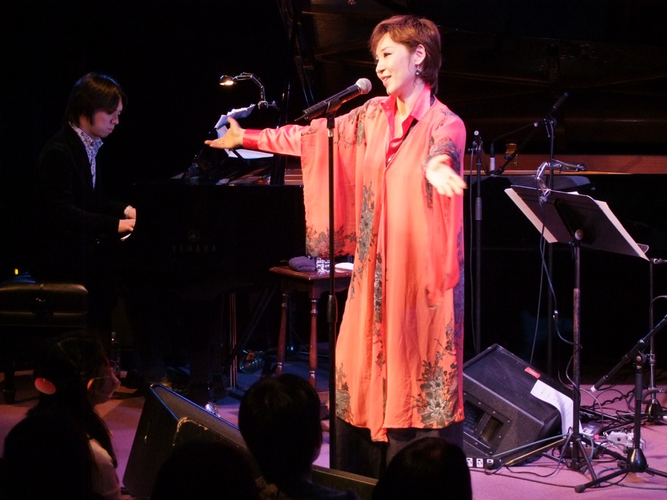今回のステージは、何度も言っていますが、“ライブ”…と堂々と宣言しています。夢輝さんの場合、その魅力は歌だけに留まらず、踊りやステージ上での演技の側面もありますので、いつもそちらの見所も沢山詰めて披露しているのですが、今回のメインは、やはり歌であり、演奏なのです。曲目的にも、それらを意識したものになっているのは明らかで、元宝塚時代の曲や、夢輝さんオリジナルの曲は勿論、“残酷な天使のテーゼ”や“懐かしの歌謡曲メドレー”等々、意外に思われる曲や、正に時代のドンピシャ(笑)とも言える曲が登場したのは、そのバラエティ溢れる魅力ならではなのかもしれません。