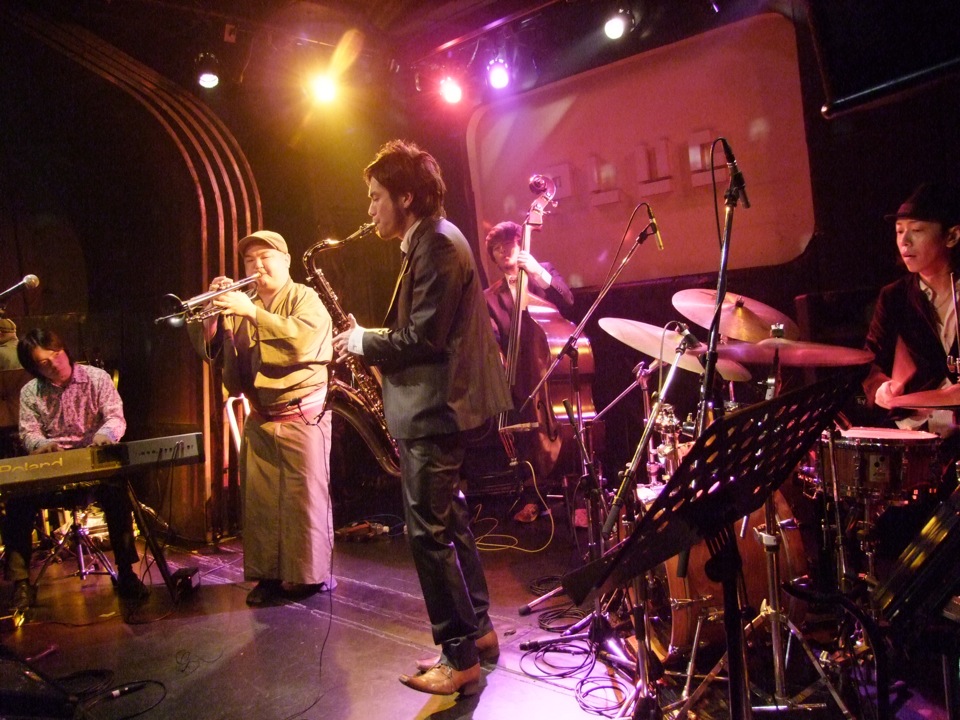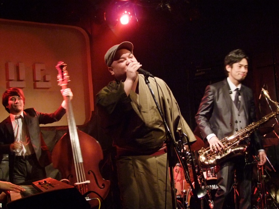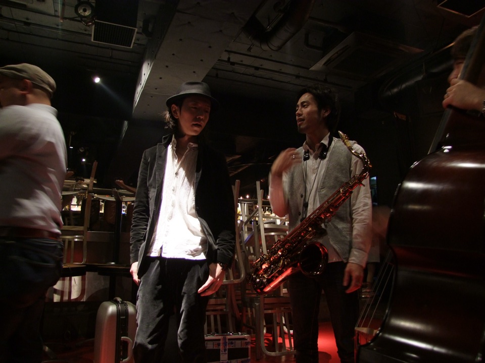この日のライブは3バンドの出演…と先程言いましたが、1バンド目の出演というのは、後に出てくるバンドをゆっくりと見ていられるという特典も見逃せません(笑)。特に、2バンド目の鈴木淳史さんのステージでは、その方の先輩にあたる織田君もゲストとして出演し、ダブル・トランペットでの演奏をここで披露してくれました。3バンド目は、このライブにしては打って変わって、ボーカルが入るバンドとなっており、少し民族的なサウンドが心地良く、そして気だるい感じを提供してくれていました。それぞれに個性があった今回のライブ…、楽しい時間を過ごせたと思います!