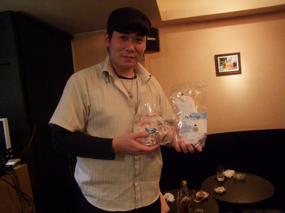 そしてこの日は、かわ島さんへの義援金の解禁日でもありました(笑)。右上写真に写っているのはシロクマ型の貯金箱でありまして、昨年の誕生日に頂いたものだそうですが、お店に常に置いているものであり、お客さんからの義援金(まあ、所謂チップというものですが…笑)が貯まりに貯まって1年が経ち、ついにその封印を解かれたわけなのです。
