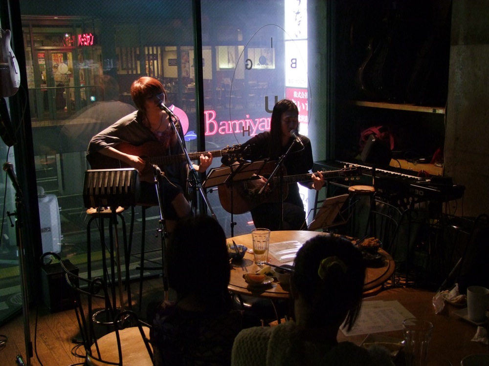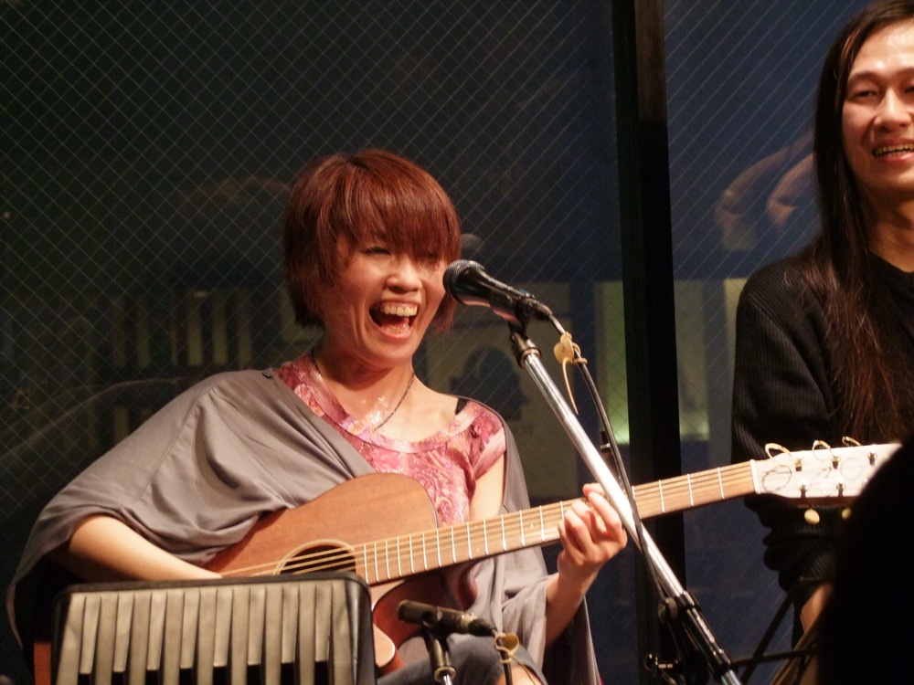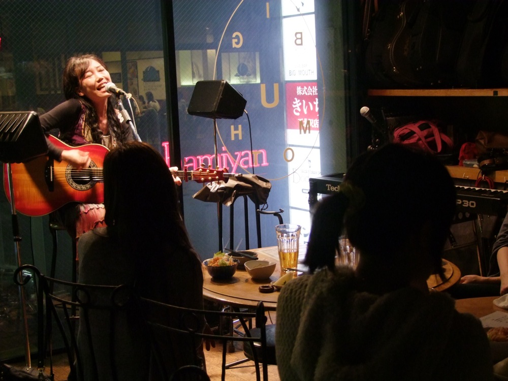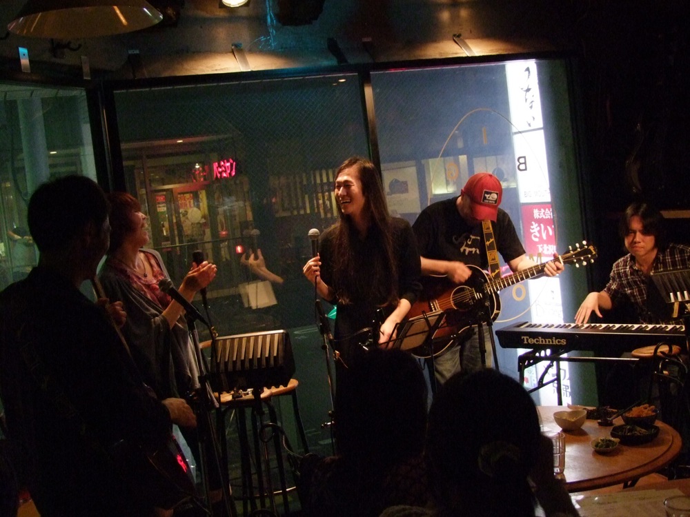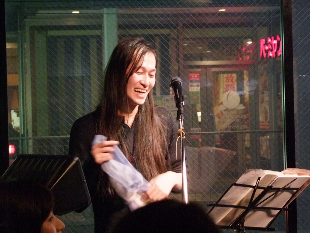 対バンの1番目は、猫丸センチメンタルチャンネルさん。ギター弾き語りの方でしたが、由美さんとは相当昔からの知り合いだそうで(そして20年近いブランクもあったそうで…)、由美さんからの紹介では、ザラッとした歌の方…と半ば抽象的な感じでしたが、聴いてみたら正にそうで(笑)、ハスキーな声を張り上げて歌を歌う様は、往年のロック時代を思わせるような格好良さで、ある意味新鮮でした。逆に、なかなか見れないタイプの方なのでは…。