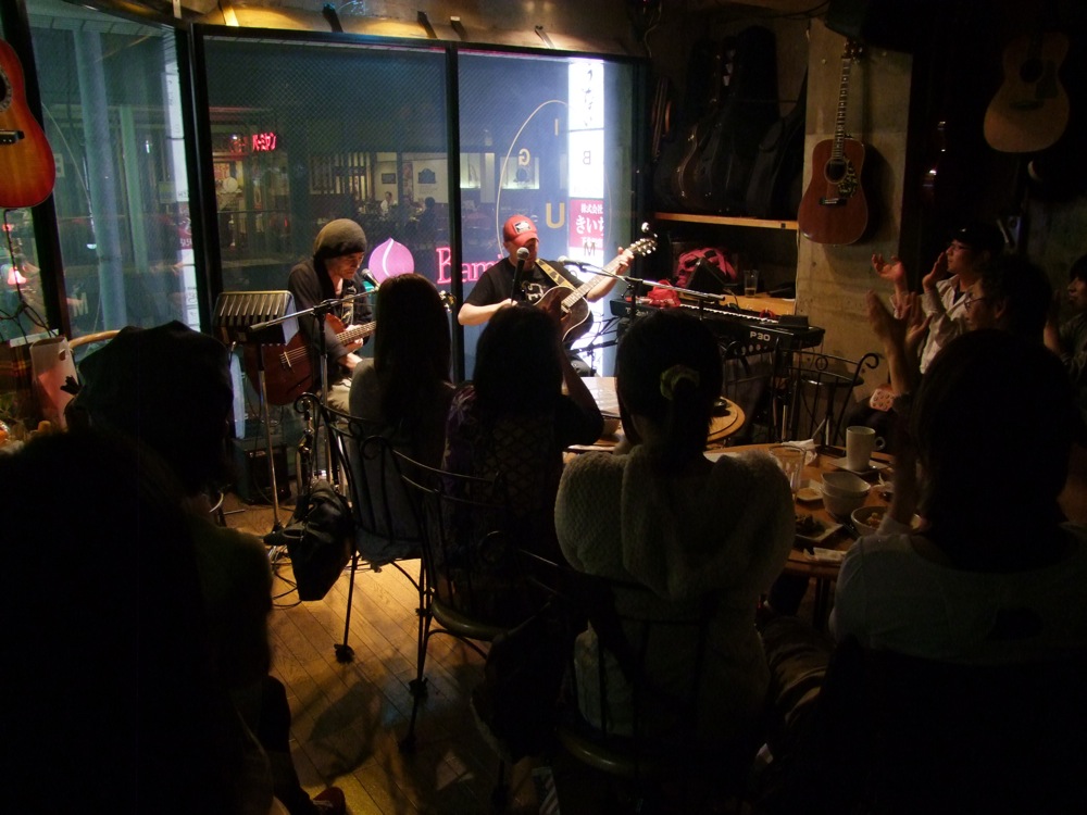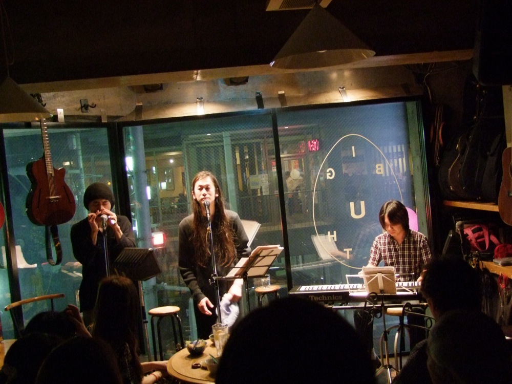 そして、2番目は早速自分達です。この日のレパートリーは、由美さんに捧げる…ではありませんが、どこかしら誕生日に繋げていけた選曲でもあり、例えばお馴染みの“ヨイトマケの唄”では「いのちのうた」…という意味合いを込めつつ演奏をしましたし、鹿嶋さんのオリジナル曲である“Canvas”は、ここでも何度か紹介した Lasah に纏わる曲でした(鹿嶋さんは、このお店に何度か由美さんを連れて行っているのです)。また、“Come Rain Or Come Shine”はジャズ・スタンダード曲で、直接リクエストされた曲ではありませんでしたが、由美さんがこの場でいなかったら、恐らく取り上げなかった曲なのではないでしょうか。その場の雰囲気によっては演奏しなくても良いぐらいのスタンスで入れていた曲でしたが、結局やってしまいましたしね。このように、選曲の基準は勿論自分達でも、どこかしらに由美さんがいるのを想像出来るような…、そんなステージだったような気がします。