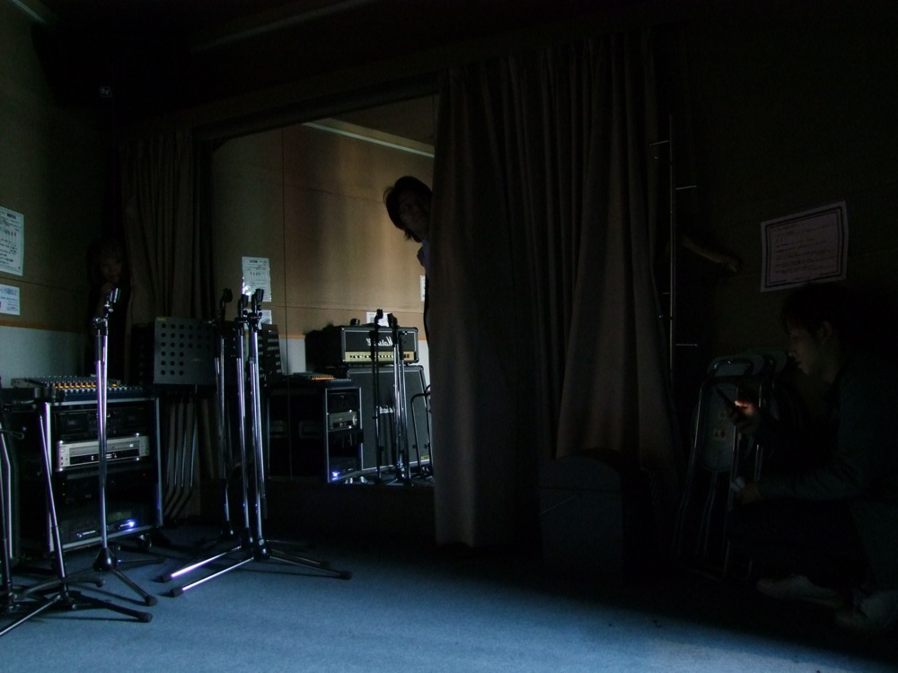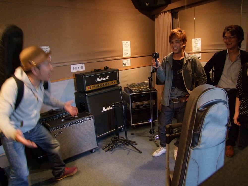 こんな感じで時間が過ぎ、スタジオ内のフラッシュが点滅しました。これがスタッフからの、本人がスタジオのエントランスに入った事の合図です(本来は、スタジオの借りている時間が終わる5分前とかに点滅するやつです)。部屋の中にも一気に緊張が走り、シーンと静まり返った中に足音が…、そしてドアのノブが動き、、、