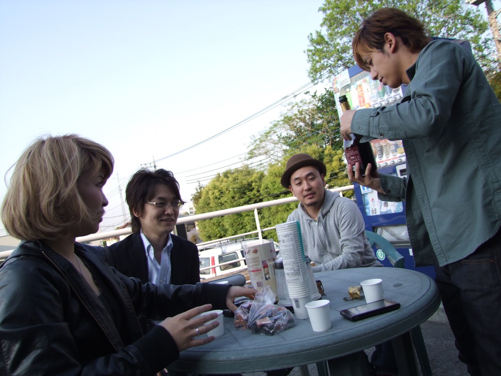 そして場所をテラスに移し(有難い事に、テラスがあるスタジオなのです♪)、シャンパンで皆で乾杯します!