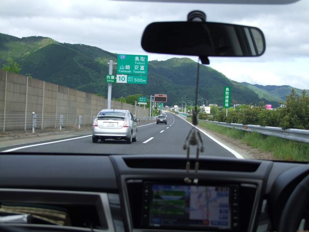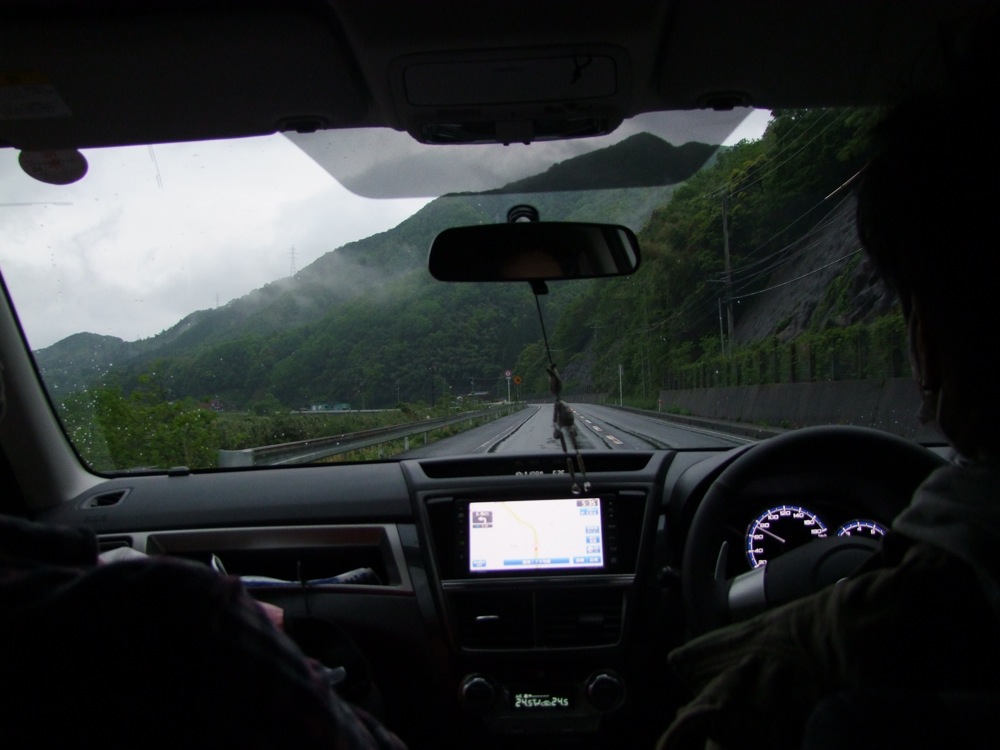 家の方に挨拶をして、そそくさと大阪へ向けて出発しました。若干、雲の多い天気でしたが、この日本海側だけだったのでしょう。山を越えて高速道路に乗る辺り(ここまで、1時間くらいは掛かるのですが…)では青空も見えてきて、天候と共に、皆の目覚めもハッキリとしたものになってくるのが分かったくらいでした(笑)。