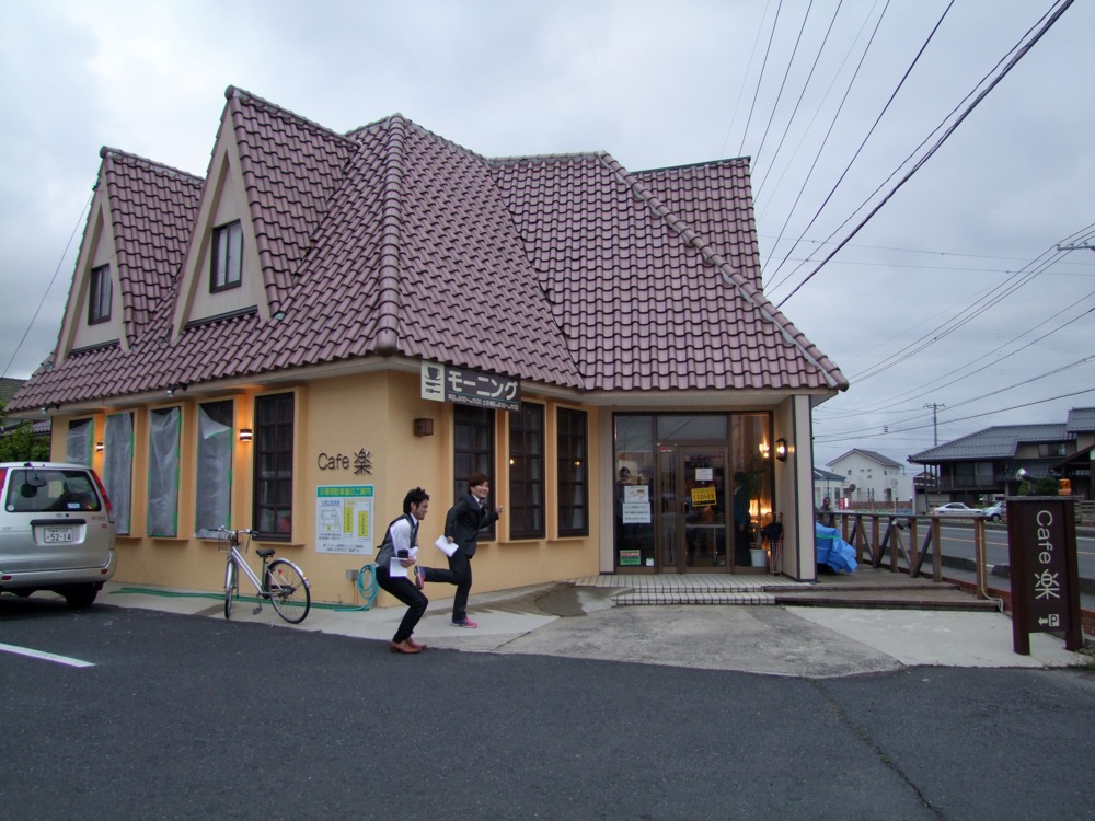 そう、ここは鳥取県の倉吉市…。サックスの藤田君の出身地でもあり、今夜はここの家にお世話にもなり、そして今夜の演奏場所である Cafe 楽…は、この家のほぼ隣りに位置しているのでした。何だか一気に地元感が漂ってきますが(笑)、到着時刻は朝10:30…。そして、この日のお店への入り時間は15:00。もう皆の脳裏に、藤田家で仮眠が出来るという思いが浮かんでいた事でしょう。…その前には勿論、Cafe 楽には挨拶も済ましておきまして…、では、いったん眠る事にします(笑)!