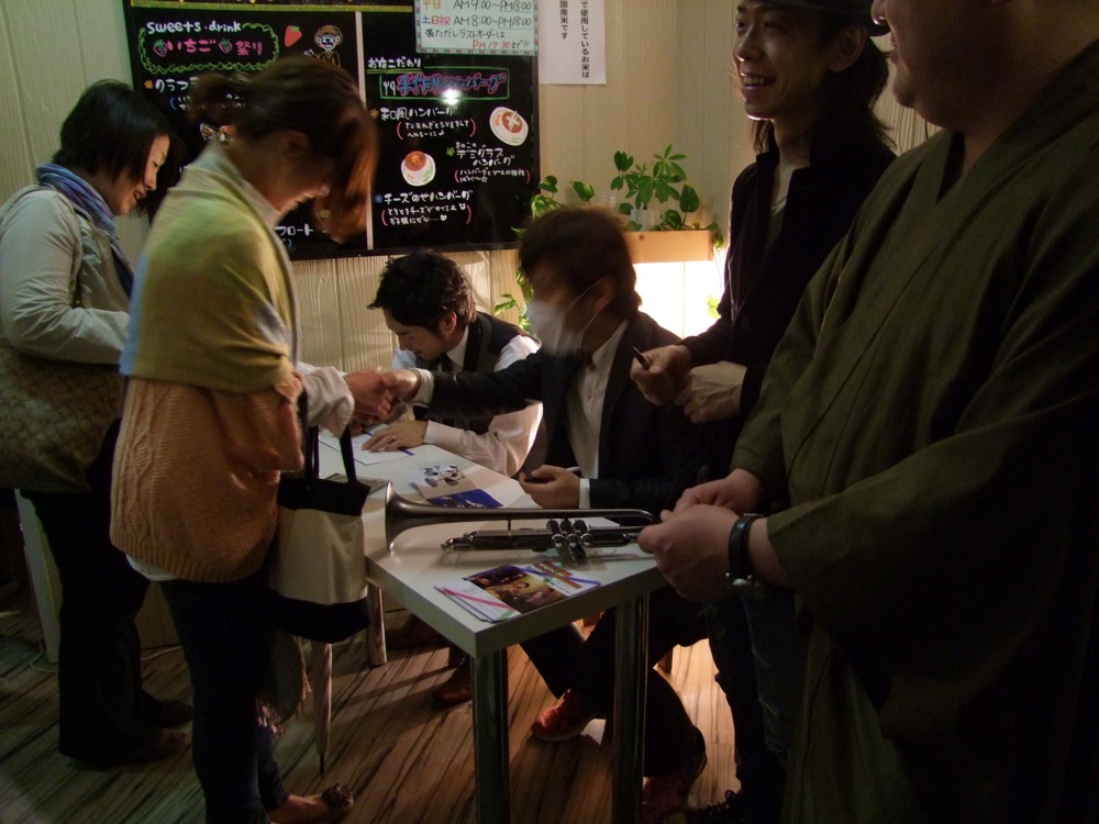 ステージ後には、CDの販売やサイン会等を行いましたが、子供達が大勢で駆け付けてくれたのは嬉しかったです。手には1枚の紙切れ(中には、ノートや折り紙を持って来ていた子供もいましたね…)を持っていて、これにサインして!…と言うではないですか。本当に普通の紙切れだったので、一瞬躊躇うも(笑)、皆で丁寧にサインを書いていったものです。大事にしてくれれば良いのですが…(笑)。